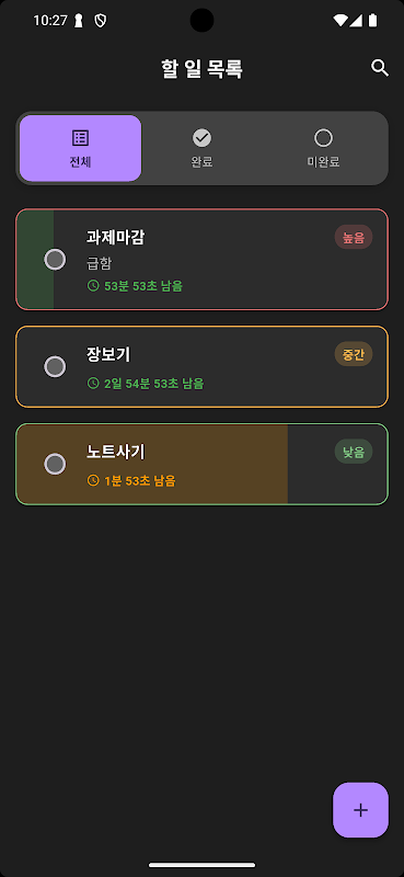 - **우선순위 관리**: 높음, 중간, 낮음의 세 가지 우선순위 레벨 설정
