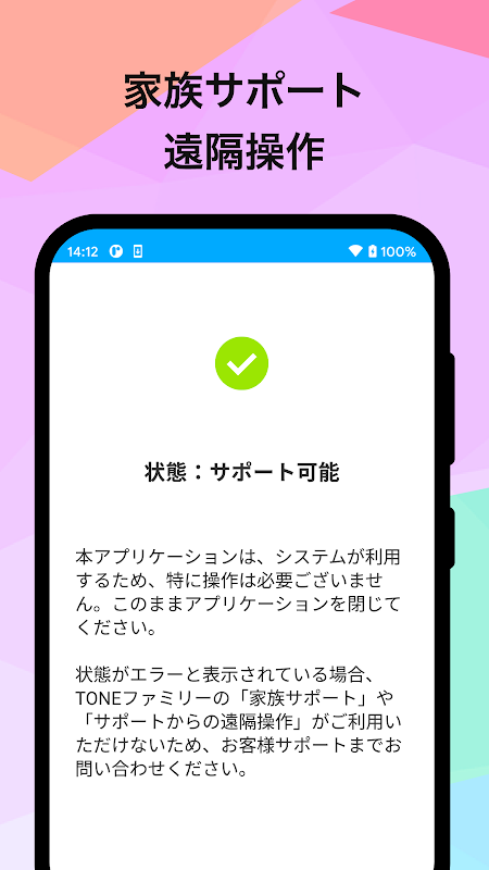 "আনশিন সেটিংস" হল একটি এক্সক্লুসিভ অ্যাপ্লিকেশান যারা গ্রাহকদের জন্য Android এর জন্য TONE-এ সদস্যতা নেয়৷ এটি পিতামাতা এবং গ্রাহক সহায়তা থেকে "দূরবর্তী সমর্থন" পাওয়ার জন্য একটি অ্যাপ।