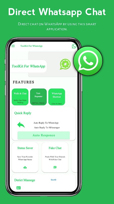 হোয়াটসঅ্যাপ এর জন্য হোয়াটসঅ্যাপ টুলকিট একটি মূল্যবান অ্যাপ্লিকেশন। এটি মোবাইল ফোনের জন্য ডিজাইন করা টুলের বিভাগের অন্তর্গত। এই টুলটি বিশেষ করে হোয়াটসঅ্যাপের জন্য ডিজাইন করা হয়েছে। এটি শুধুমাত্র একটি অ্যাপে বৈশিষ্ট্যের সম্পূর্ণ পরিসীমা প্রদান করে। এই অ্যাপটি ডাউনলোড করার পর আপনাকে স্ট্যাটাস সেভার, ফেক চ্যাট এবং আরও অনেক কিছুর জন্য অ্যাপ ডাউনলোড করতে হবে না। এই সমস্ত আকর্ষণীয় বৈশিষ্ট্যগুলির জন্য আপনাকে কেবল আমাদের হোয়াটসঅ্যাপ টুলবক্স ডাউনলোড করতে হবে। আমরা শুধুমাত্র একটি অ্যাপে আপনাকে আকর্ষণীয় বৈশিষ্ট্য প্রদান করছি।