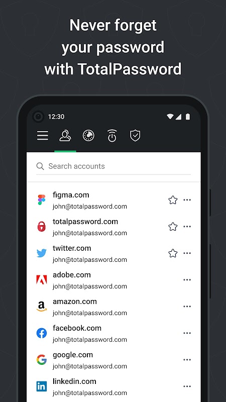 টোটাল পাসওয়ার্ড হল একটি স্মার্ট পাসওয়ার্ড ম্যানেজার, ব্যস্ত লোকেদের জন্য আদর্শ যাদের সব লগইন এবং পাসওয়ার্ড মনে রাখার জন্য সময় নেই। আমরা গভীরভাবে সমন্বিত এনক্রিপশনের সাথে আপনার সমস্ত ডেটা এবং অনলাইন গোপনীয়তা পরিচালনা এবং রক্ষা করি। 5.0 পর্যন্ত পুরানো সংস্করণগুলির জন্য পশ্চাদমুখী সমর্থন সহ Android সংস্করণ 8.0+ এ Android অটো-ফিল পরিষেবা ব্যবহার করে দ্রুত পাসওয়ার্ডগুলি পূরণ করুন৷
