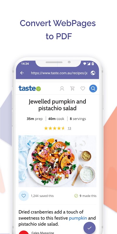 শুধুমাত্র টোটাল পিডিএফ দিয়ে, আপনি যেকোনো ওয়েবসাইট পিডিএফ ফরম্যাটে সেভ করতে পারবেন। ইন্টারনেট থেকে আপনার স্থানীয় স্টোরে আপনার প্রয়োজনীয় তথ্য সংরক্ষণ করুন, যা আপনাকে সর্বদা আপনার তথ্যে অ্যাক্সেস দেবে, এমনকি আপনি অফলাইনে থাকলেও।