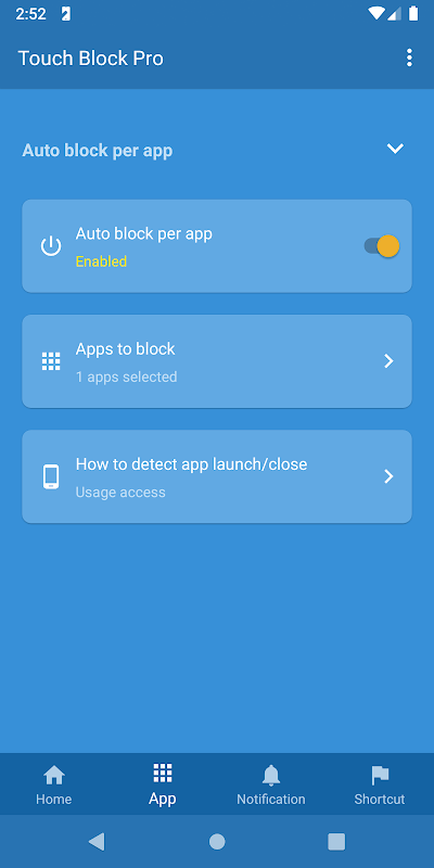 নির্দিষ্ট অ্যাপটি চালু হয়েছে বা বন্ধ হয়েছে তা সনাক্ত করে যখন স্বয়ংক্রিয়ভাবে ব্লকিং ফাংশনটি চালু বা বন্ধ করে দেয়।