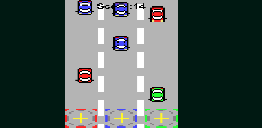 If you see a car with a different color than the square at the bottom of the screen, erase it by touching it.