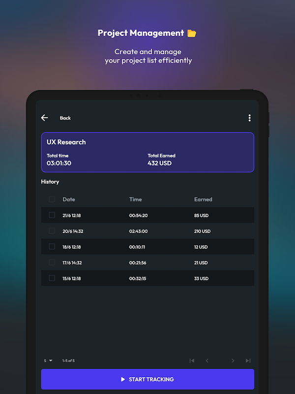 • উপার্জনের গণনা: ট্র্যাক করা ঘন্টার উপর ভিত্তি করে স্বয়ংক্রিয়ভাবে আপনার উপার্জন গণনা করে।