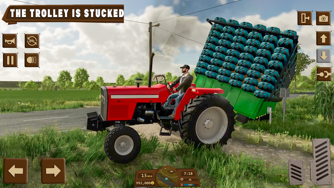 ট্র্যাক্টর গেমস 3D বাস্তব ট্র্যাক্টর ট্রলি ড্রাইভিং সহ গ্রামে কৃষিকাজ উপভোগ করতে
