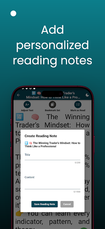 আমাদের অ্যাপটি এমনভাবে ডিজাইন করা হয়েছে যাতে আপনি ট্রেডিং বুকের সর্বাধিক ব্যবহার করতে পারেন, এমন সরঞ্জামগুলি অফার করে যা আপনার পড়ার অভিজ্ঞতাকে সমৃদ্ধ করে: