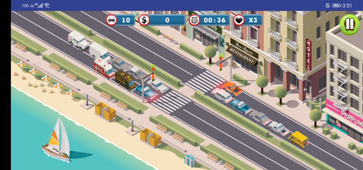 A game in which you have to control the traffic between streets by changing the traffic lights from green to red without any car accidents and crashes !