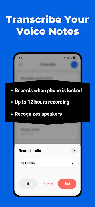 সময় বাঁচান এবং দক্ষতা বাড়ান: 1 Transcribe এর AI বৈশিষ্ট্যগুলি যেমন AI সহকারী, AI চ্যাট, এবং ভয়েস মেমো ট্রান্সক্রিপশন ম্যানুয়াল নোট নেওয়া এবং ট্রান্সক্রিপশনে ব্যয়িত সময় কমায়। আমাদের AI কে বিস্তারিতগুলি পরিচালনা করতে দিন যখন আপনি সবচেয়ে গুরুত্বপূর্ণ বিষয়ে মনোযোগ দিন।
