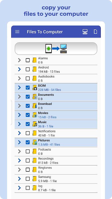 অনায়াসে আপনার ফাইল হ্যান্ডলিং অপ্টিমাইজ করুন, দক্ষ ব্যাকআপ এবং সংগঠিত স্টোরেজ নিশ্চিত করুন। সুবিধা এবং নিরাপত্তার জন্য ডিজাইন করা FILES to COMPUTER এর সাথে আপনার ফাইল স্থানান্তরের অভিজ্ঞতা আপগ্রেড করুন৷ একটি নিরবচ্ছিন্ন এবং স্বজ্ঞাত ফাইল পরিচালনার যাত্রা অন্বেষণ করুন