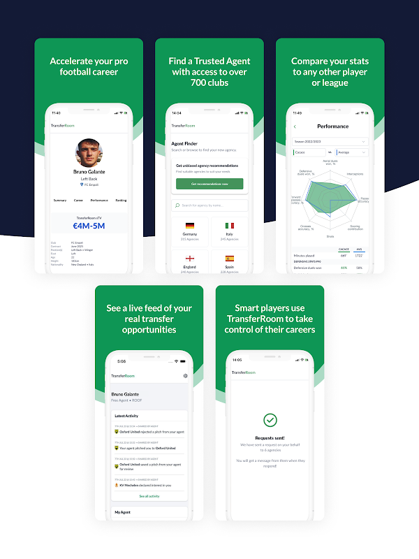 আপনার এজেন্ট যাচাই করুন এবং 5 গুণ বেশি ট্রান্সফার সুদ পান। বিশ্বব্যাপী 700 টিরও বেশি ক্লাবে সিদ্ধান্ত গ্রহণকারীরা জানতে পারবেন কে আপনাকে প্রতিনিধিত্ব করে।