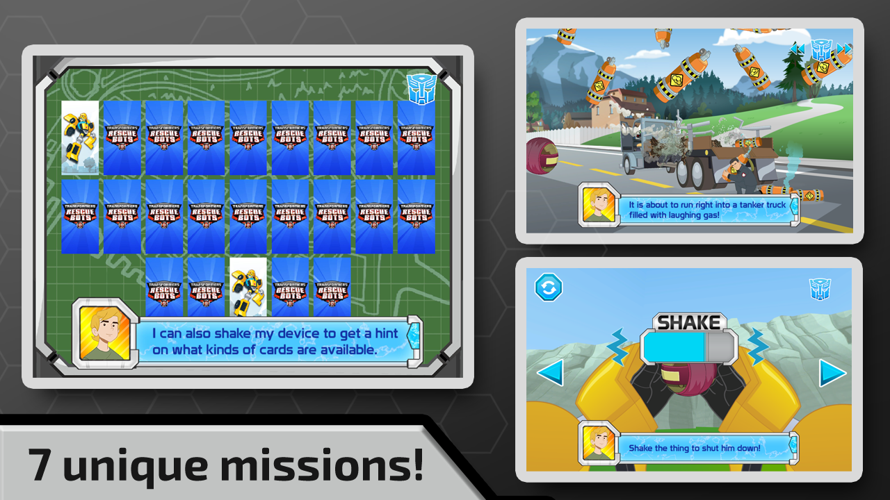 দলের সদস্য লাগছে, কোডি শহরে প্রায় আপনি এবং Griffin রক রেসকিউ পথ দেখান হিসেবে, আপনি সাত বিভিন্ন কার্যক্রম মাধ্যমে ক্ষমতা যেমন আপডেট সম্প্রচার দ্বীপের এক পাশ থেকে অন্যান্য, লুকাচুরি হাস্যময় গ্যাস রেসিং, সন্দেহভাজন মিলে, এবং Energon আপ gobbling কিউব! তরুণ রেসকিউ বট ভক্ত এবং উঠতি পাঠকদের, এই অ্যাপ্লিকেশন বৈশিষ্ট্য জন্য পরিকল্পিত: