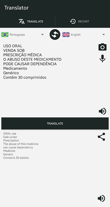 With this Translator you can translate texts, voice, photos and images.