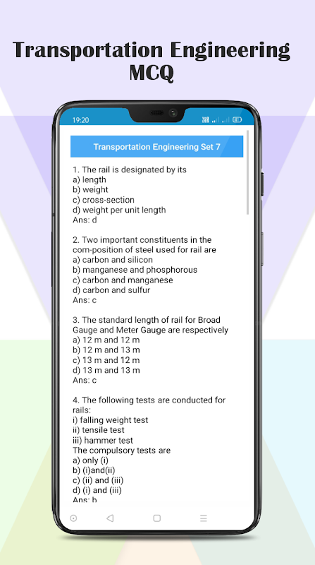 অ্যাপটিতে পরিবহন ইঞ্জিনিয়ারিংয়ের একাধিক পছন্দের প্রশ্নের 15 টি সেট রয়েছে
