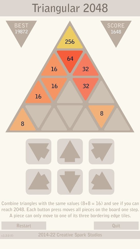 ট্রায়াঙ্গুলার 2048 জনপ্রিয় 2048 গেমের ধরনতে একটি বৈচিত্র্য।