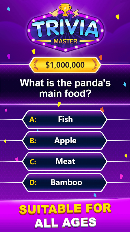 আপনার বয়স বা দক্ষতার স্তর যাই হোক না কেন, আপনি এই বিনামূল্যের ট্রিভিয়া গেমটি উপভোগ করতে পারেন। সামঞ্জস্যযোগ্য অসুবিধা এটিকে নমনীয় করে তোলে এবং বিভিন্ন বিষয় নিশ্চিত করে যে প্রত্যেকের জন্য কিছু আছে।