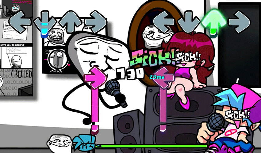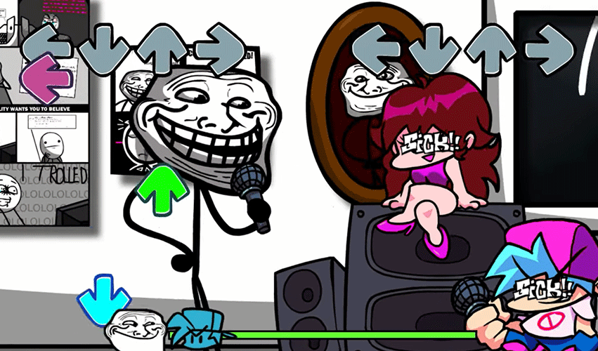 Trollface Friday funny test mod is one of the best fnf music simulator, This time we battle Trollface/Trollge and he's all about trolling your arrow keys and make you feel like you're hallucinating.