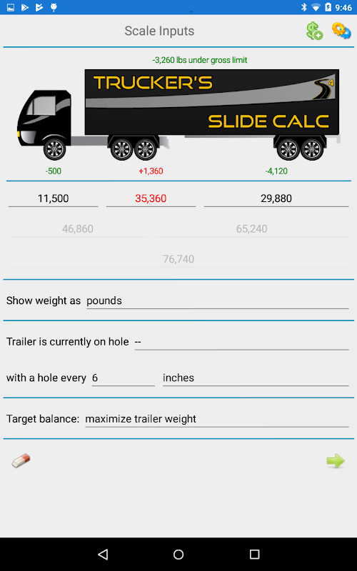 ট্রাকারের স্লাইড ক্যালক প্রতিটি গর্তে আপনার অক্ষের ওজনগুলি অনুকরণ করতে একটি কম্পিউটার অ্যালগরিদম ব্যবহার করে। তারপর পরিস্থিতি জন্য সেরা গর্ত পছন্দ করে।