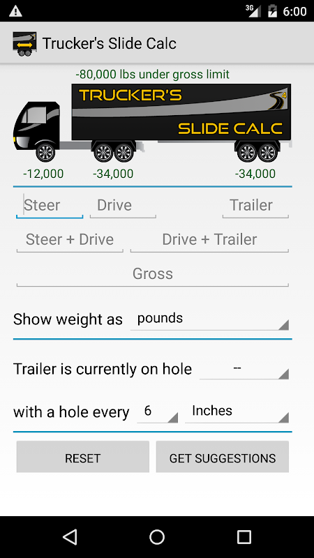 Disclaimer: এই অ্যাপ্লিকেশনটিতে ব্রিজ এবং কিংপিন-টু-রিয়ার এক্সেল আইনগুলি বিবেচনা করা হয় না। মনে রাখবেন, আপনি এই অ্যাপ্লিকেশনটি ব্যবহার করলেও, আপনার লোড সমস্ত ফেডারেল এবং স্থানীয় আইনগুলির সাথে সঙ্গতিপূর্ণ কিনা তা নিশ্চিত করা আপনার দায়িত্ব।
