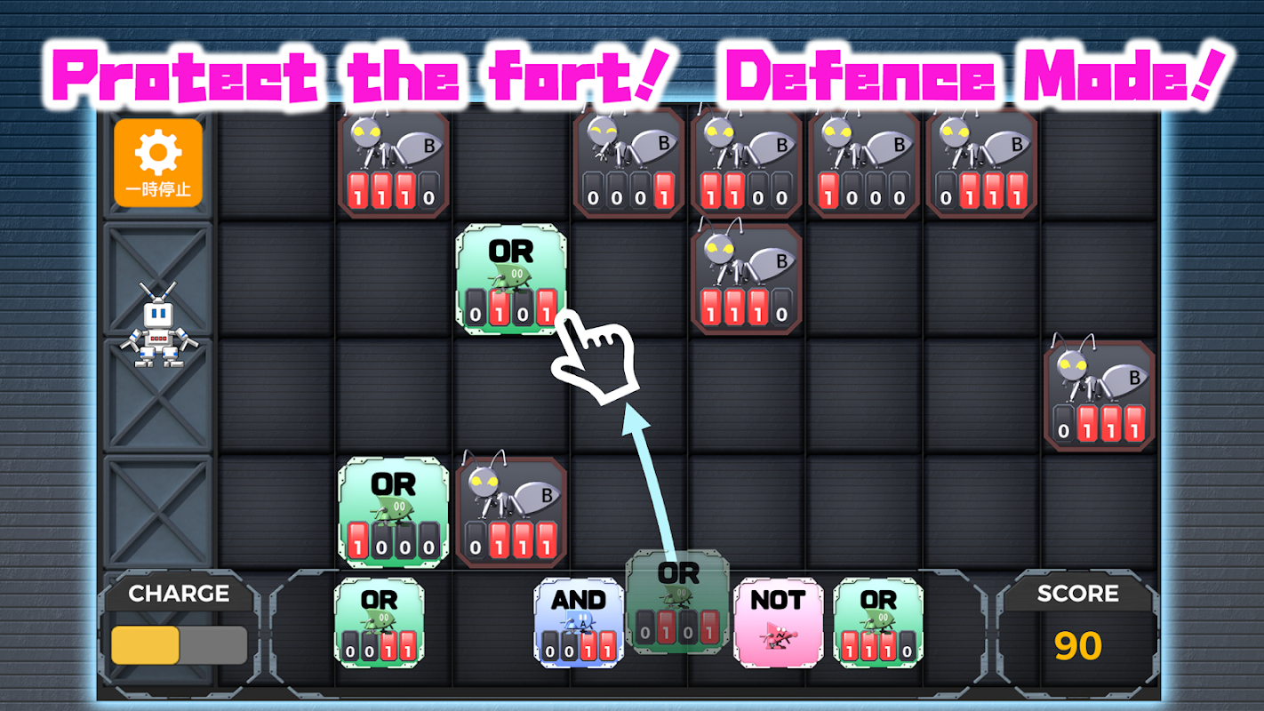 In this game, you will be using panels containing the four logical operations in order to delete the "BUG".