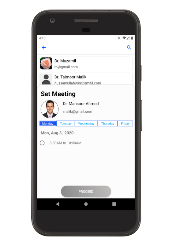 This app is made for the students of Comsats University Islamabad (CUI) , Wah campus. The Teacher student meeting scheduler (TSMS) makes it hassle free for the students to interact with their desired teachers and schedule meetings with them. TSMS was made in order to make it easy for the students to interact with their teachers while following the new rule that was made for the students which prohibited the students to enter the faculty hall. TSMS solves that problem while following the rule.