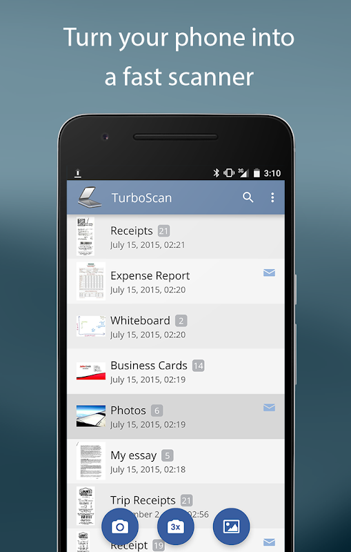 TurboScan আপনার ফোনকে একটি সম্পূর্ণ বৈশিষ্ট্যযুক্ত PDF ডকুমেন্ট স্ক্যানারে পরিণত করে।