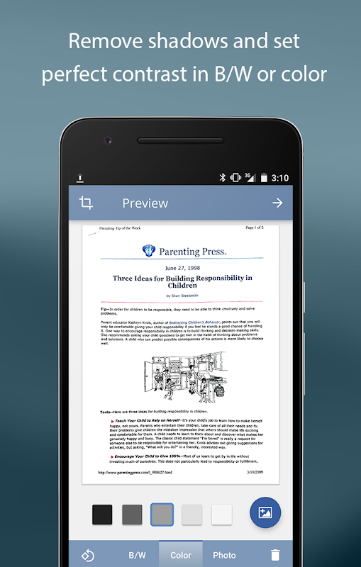 • স্বয়ংক্রিয়ভাবে দস্তাবেজের প্রান্ত সনাক্তকরণ এবং দৃষ্টিকোণ সংশোধন