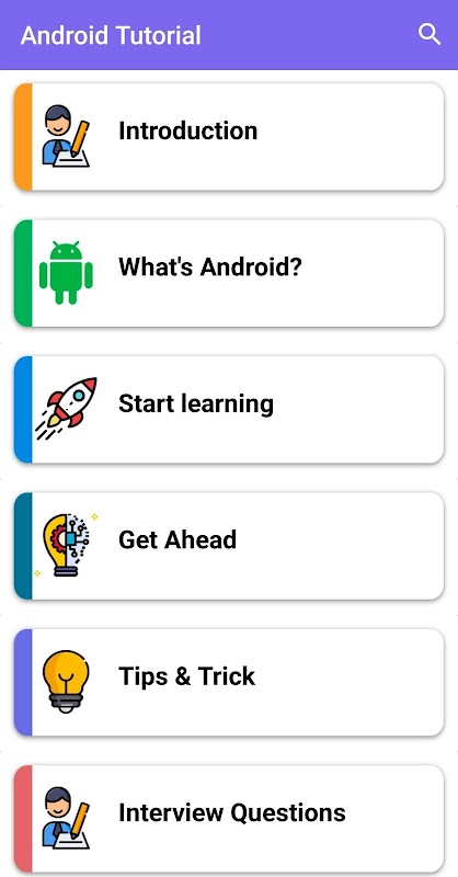 আমাদের অ্যান্ড্রয়েড বিকাশ টিউটোরিয়ালটি শুরু এবং পেশাদারদের জন্য তৈরি। এই টিউটোরিয়ালটি শেষ করার পরে, আপনি অ্যান্ড্রয়েড প্রোগ্রামিংয়ের মাঝারি পর্যায়ে দক্ষতার সন্ধান পাবেন যেখানে আপনি নিজেকে পরবর্তী স্তরে নিয়ে যেতে পারেন। এই অ্যান্ড্রয়েড টিউটোরিয়ালটি অ্যান্ড্রয়েড অ্যাপ্লিকেশন বিকাশ শেখার জন্য একটি সম্পূর্ণ গাইড সরবরাহ করে। আপনি এই অ্যান্ড্রয়েড টিউটোরিয়াল অ্যাপ দিয়ে ইন্টারভিউ প্রশ্নের একটি সেটও অ্যাক্সেস করতে পারেন।