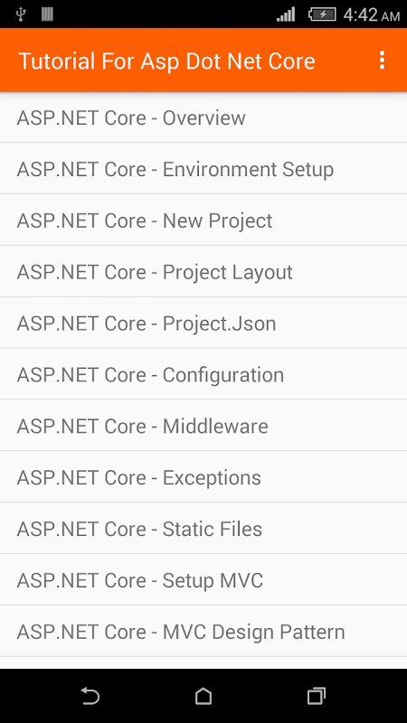 Orange Tutorials brings for you handy and best Tutorial For Asp.Net Core. Tutorial For Asp Dot Net Core App is user friendly, light weight, an easy-to-use for learning. The lessons in App are easy and effective. The app has following features: