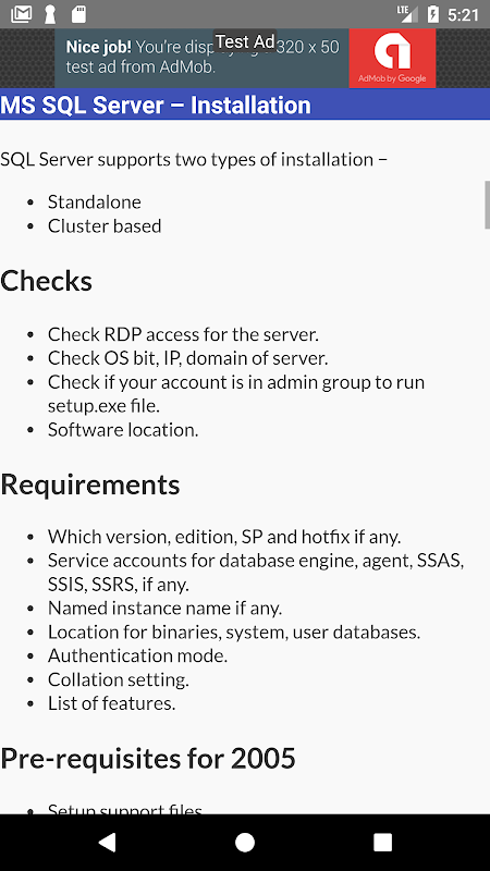 Wait for what else, if you want to get a Tutorial for MS SQL SERVER that you can take it anywhere, immediately use this application. Do not forget to give us feedback for better MS SQL SERVER tutorial app.