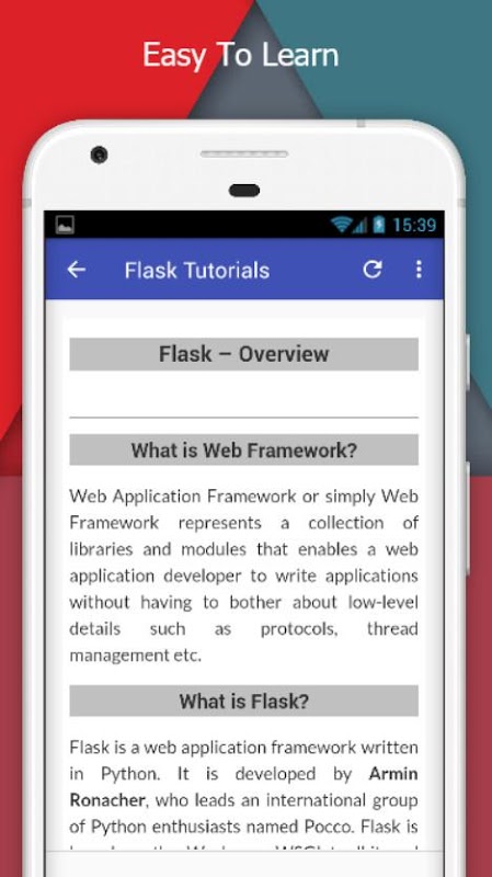 Wait for what else, if you want to get a free Flask tutorial that you can take it anywhere, immediately use this application. Do not forget to give us feedback for better Flask tutorial app.