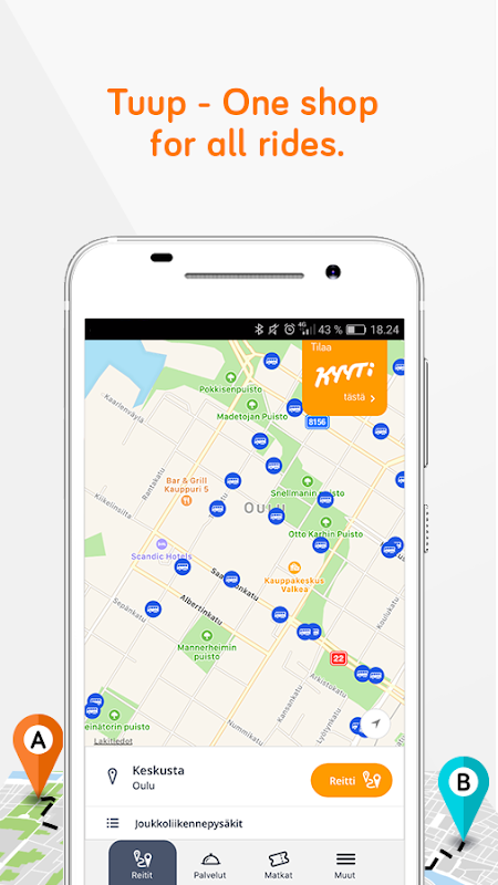 Tuup was created by a Finnish team awarded as most promising European Mobility startup for its development. We continue developing user friendly mobility services for consumers, businesses and public transport enterprises under the name Kyyti. Look for our new apps under that name!