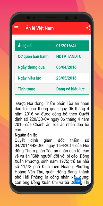 Ện Lệ Việt Nam là một ứng dụng tổng hợp các án lệ được Hội đồng thẩm phán toà án nhân dân tối cao ban hành và ác áp dụng trong công tác xét xử x xét xử