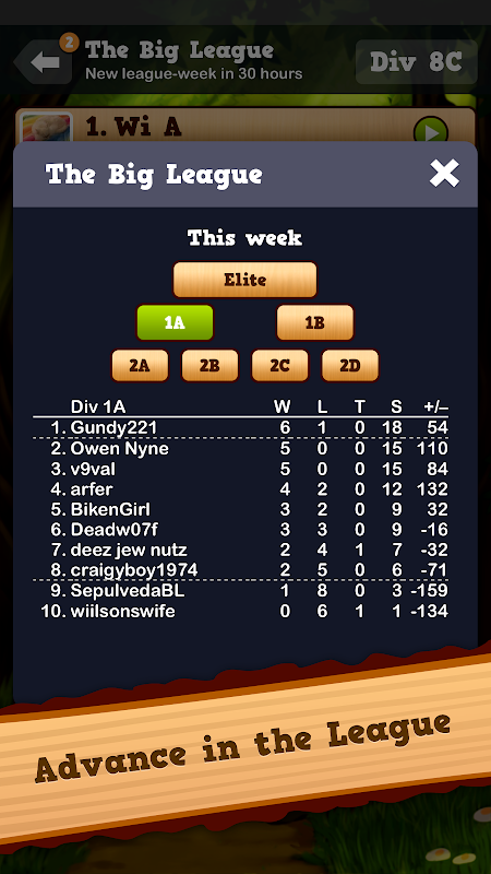 স্পর্শ প্রতিযোগিতার জন্য লীগে যোগ দিন। আপনি প্রতি সপ্তাহে নয়টি গেম পাবেন যা নির্ধারণ করবে যে আপনি লীগ ট্রিতে উপরে বা নিচে কিনা। আপনি এটি শীর্ষে সব উপায় করতে পারেন?