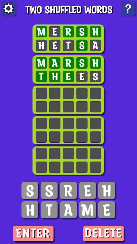 Two Shuffled Words is fun with friends and family so remember to share the game and see who can solve the 2 words first and get the highest streak.