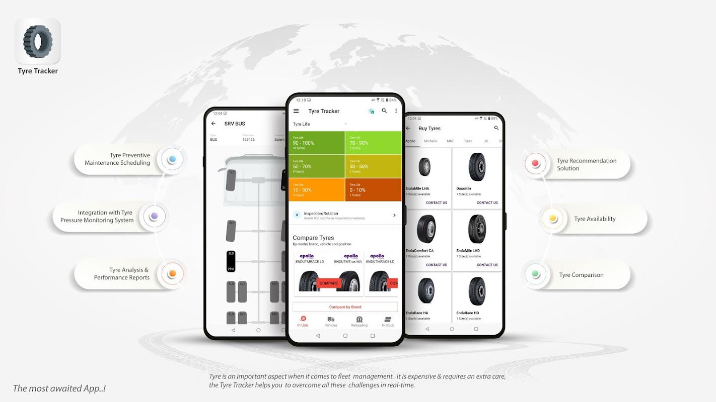 বহরের পরিচালনার ক্ষেত্রে টায়ার একটি গুরুত্বপূর্ণ বিষয়। এটি ব্যয়বহুল এবং একটি অতিরিক্ত যত্ন প্রয়োজন, টায়ার ট্র্যাকার আপনাকে রিয়েল-টাইমে এই সমস্ত চ্যালেঞ্জগুলি কাটিয়ে উঠতে সহায়তা করে।