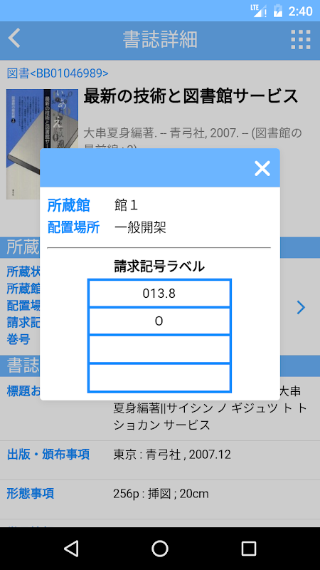 বিশ্ববিদ্যালয় গ্রন্থাগারের বাক্স Android এর মধ্যে "Fujitsu শিক্ষাগত সমাধান iLiswave-জে V3" এর opac ফাংশন ব্যবহার করে এমন একটি অ্যাপ্লিকেশন.
