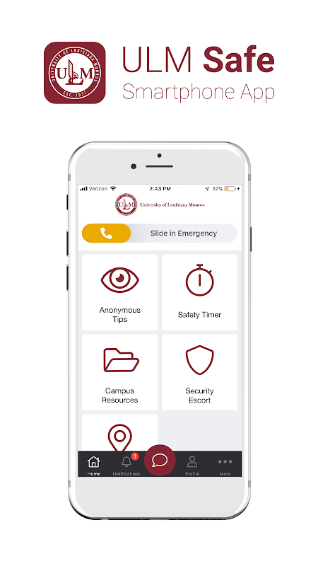 Monroe এ লুইসিয়ানা বিশ্ববিদ্যালয়ের অফিসিয়াল নিরাপত্তা অ্যাপ্লিকেশন।