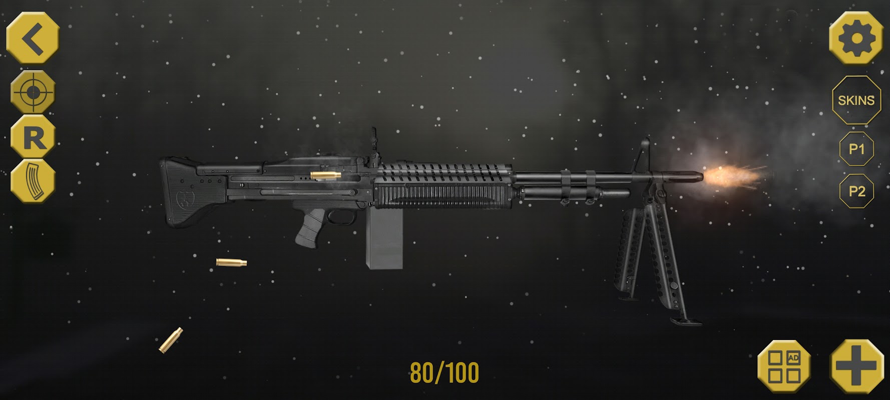 আপনার মজা এবং উপভোগের জন্য বিভিন্ন ধরনের আশ্চর্যজনক অস্ত্র এবং বন্দুক উপলব্ধ। এই গান সিমুলেটর গেমটিতে আপনার নিষ্পত্তি হল: একটি ভলকান এম134, ফ্লিনলক পিস্তল, রিভলভার, একটি পিস্তল, একটি মেশিনগান, একটি স্নাইপার, একটি শটগান, একটি সাবমেশিন গান এবং অ্যাসল্ট রাইফেল৷ শুটিং রেঞ্জে যান এবং অস্ত্রের দ্বারা আপনাকে দেওয়া সমস্ত অস্ত্র চেষ্টা করুন এবং বাস্তবসম্মত বন্দুকের শব্দ উপভোগ করুন।