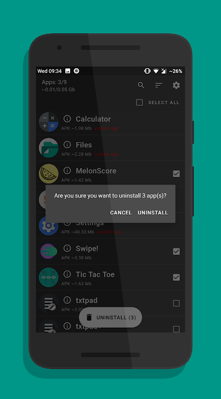 UnApp - আনইনস্টলেশনের জন্য একাধিক অ্যাপ্লিকেশন নির্বাচন করুন