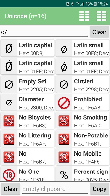 ইউনিকোড এবং ইমোজিসগুলি সন্ধান করুন এবং তালিকাবদ্ধ করুন।