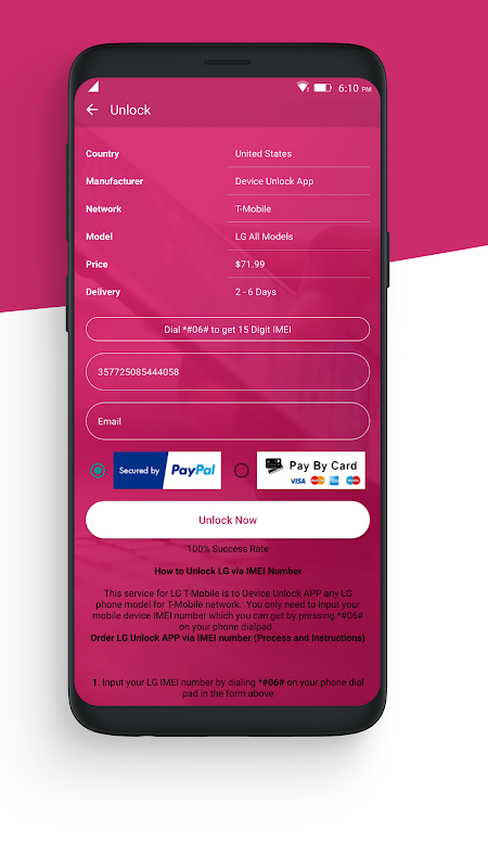 It is best to unlock any LG mobile model like Stylo, Fortune, LG Phoenix, Xpression, X Charge, Harmony, ThinQ, Escape, Aristo 2, SE, Optimus,Tribute Empire, K series, and all other models. Use option in the main menu to order free service to unlock it and use as free mobile. It works on all LG mobile devices for sim unlock. Success rates of the service changes on daily basis 100%. Upgrade sim without any bio smart and enjoy mobiles everywhere. Get the latest upgrade for LG mobile and use your sim without hurdles. LG unlock app is to download. You do not need to pay to download and to use this app it's free. We provide very low-cost service to unlock any networks with very less price than market unlock services. Download it and get your mobile unlocked in very least price.