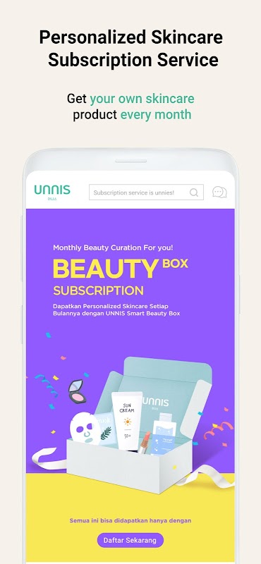 Unnis - ব্যক্তিগতকৃত স্কিনকেয়ার সাবস্ক্রিপশন এবং সুপারিশ