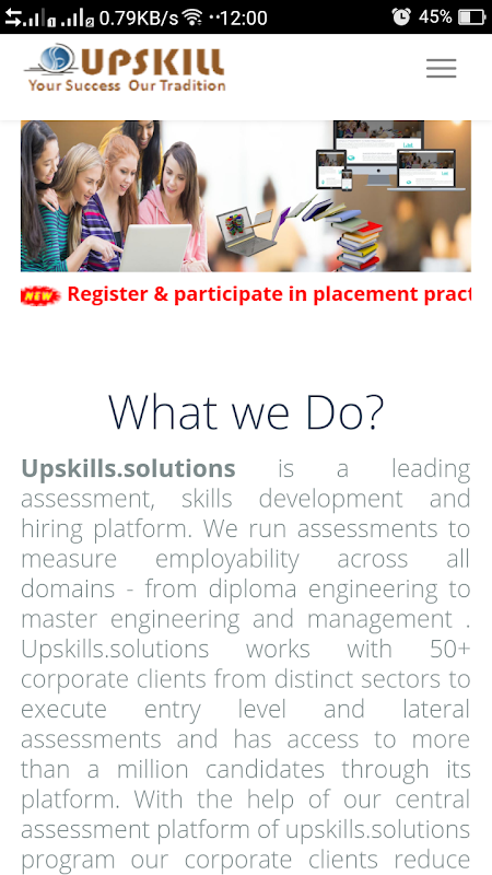 By understating the time factor and busy schedule of students , We at SB IT Service trying to give the handy online solution through our webportal www.upskills.solutions to improve one's aptitude skills. One needs to register on our portal for appearing online mock test series by mean of any media like laptop/computer/mobile etc with internet connectivity.