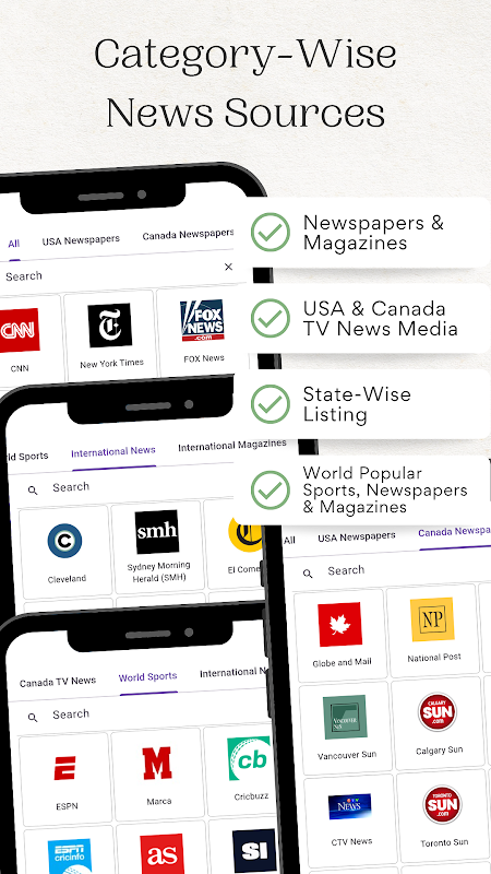 অফিসিয়াল লোগো সহ এক নজরে সংবাদের উত্সগুলি সনাক্ত করুন এবং শুধুমাত্র একটি ট্যাপ দিয়ে সম্পূর্ণ সাইটটি অ্যাক্সেস করুন৷