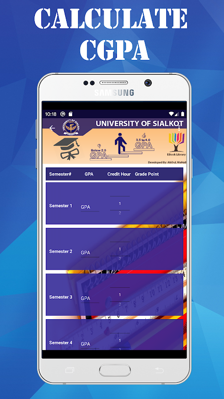 USKT GPA Calculator is a free app available for Android. This app is specially designed for University of Sialkot. It enables Android users to calculate their GPA & CGPA anytime anywhere. This app strictly follows the GPA & CGPA calculation criteria as per University of Sialkot with user-friendly interface. Developed by AbDuL WaHaB.