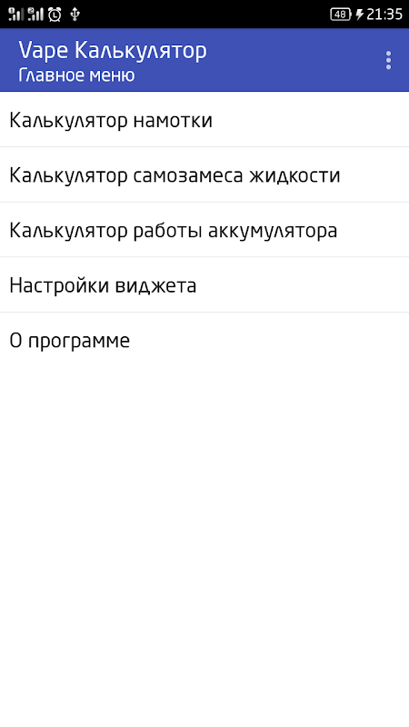 Надоело покупать дорогую готовую жидкости для электронных сигарет? Хотите хорошо сэкономить на парении? Не знаете как сделать самозамес и какие компоненты смешивать? У Вас есть готовая основа крепкой жидкости, и Вы хотите её разбавить, чтобы сделать её менее крепкой? Во всём этом Вам поможет калькулятор самозамеса жидкости. Вам больше не придётся покупать готовую жидкость, ведь, имея у себя на устройстве такое приложение, будет очень просто сделать жидкости самому, необходимо только иметь нужные компоненты. В калькуляторе можно указать все необходимые параметры для самозамеса жидкости. В калькуляторе Вы можете указать:
