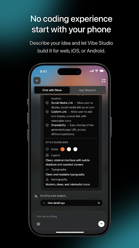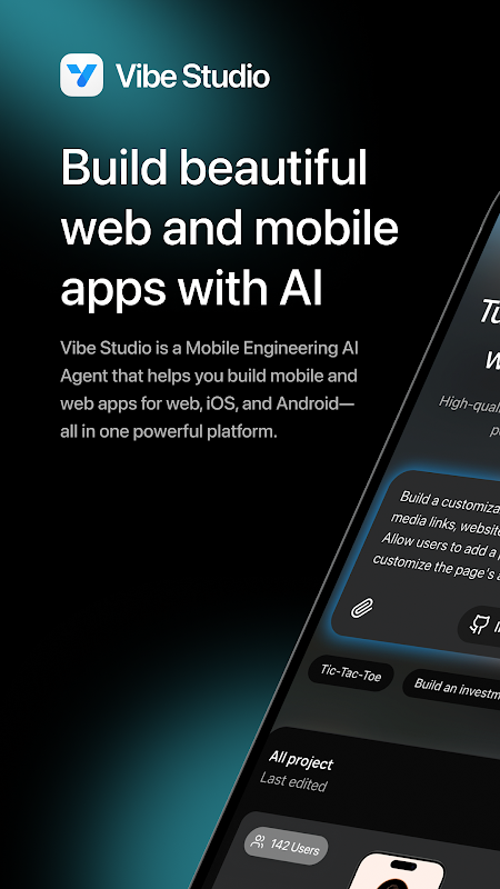 Vibe Studio হল একটি মোবাইল ইঞ্জিনিয়ারিং AI এজেন্ট যা আপনাকে ওয়েব, iOS, এবং Android-এর জন্য মোবাইল এবং ওয়েব অ্যাপ তৈরি করতে সাহায্য করে—একটি শক্তিশালী প্ল্যাটফর্মে।