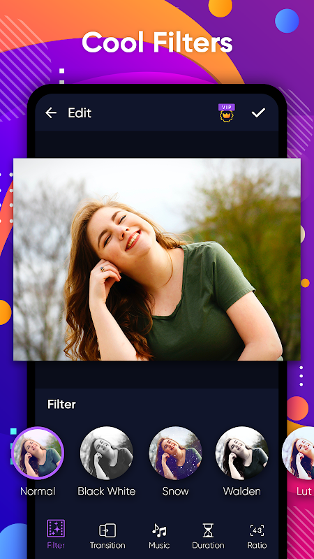 মিউজিক, ফিল্টার, স্লাইডশো এবং প্রভাবগুলির সাথে ভিডিওগুলিকে একত্রিত করতে এবং ট্রিম করতে একটি ভিডিও নির্মাতা৷