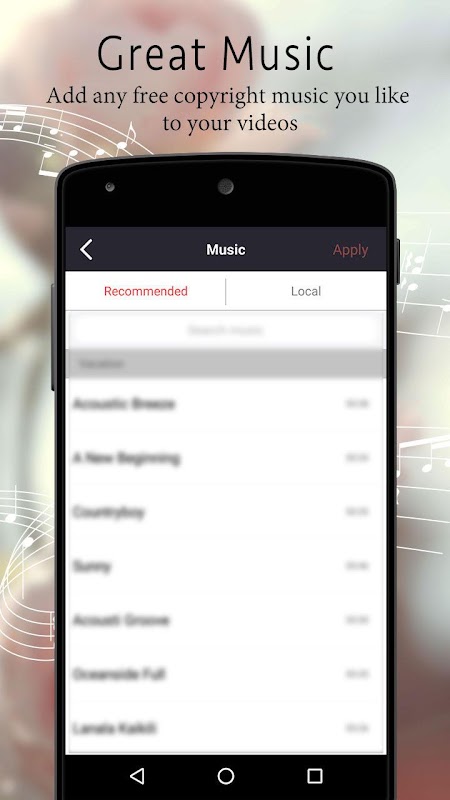Video Editor - Kuvi is the best way to create (selfie) videos dubbed with popular free copyright music . Decorate movie with any free copyright music you like .