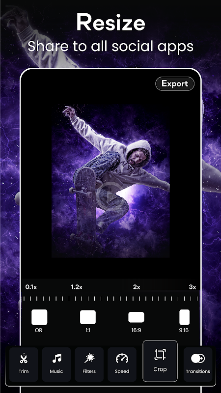 ভিডিও মেকার অ্যাপের উচ্চ মানের ফাংশন ভিডিও ক্রিয়েটর এবং ভিডিও কাটার, স্লাইড শো এডিটর, ভিডিও স্পিড কন্ট্রোলার, MP4 থেকে MP3, ভিডিও জয়েন্টার এডিটর, ভিডিও রিভার্স স্লো/ফাস্ট মোশন এবং ভয়েস-ওভার ভিডিও রেকর্ডিং। শট এ রেট্রো এবং কুল গ্লিচ ভিডিও একটি প্রো ভিডিও মেকার এবং ফ্রি ভিডিও এডিটর অ্যাপ ভিডিও মেকারের সাথে, আপনি ওয়াটারমার্ক ছাড়াই ভিডিও রপ্তানি করতে পারেন এবং সহজেই সোশ্যাল মিডিয়া প্ল্যাটফর্মে শেয়ার করতে পারেন।